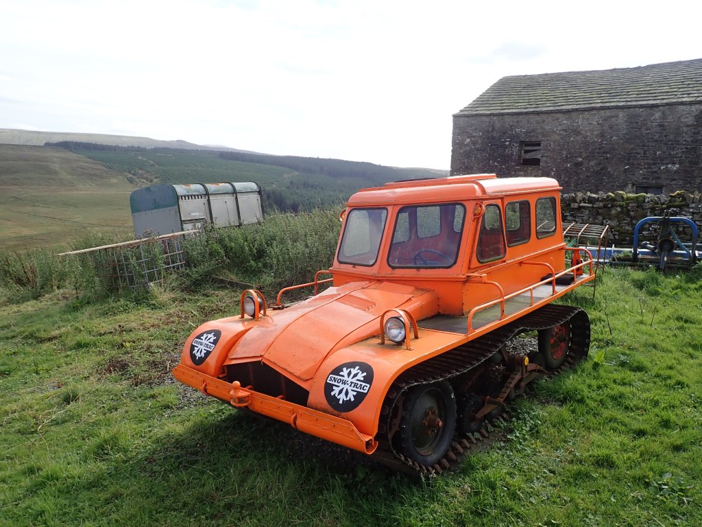 The Snow-Trac parked at Cam Houses in Langstrothdale.
