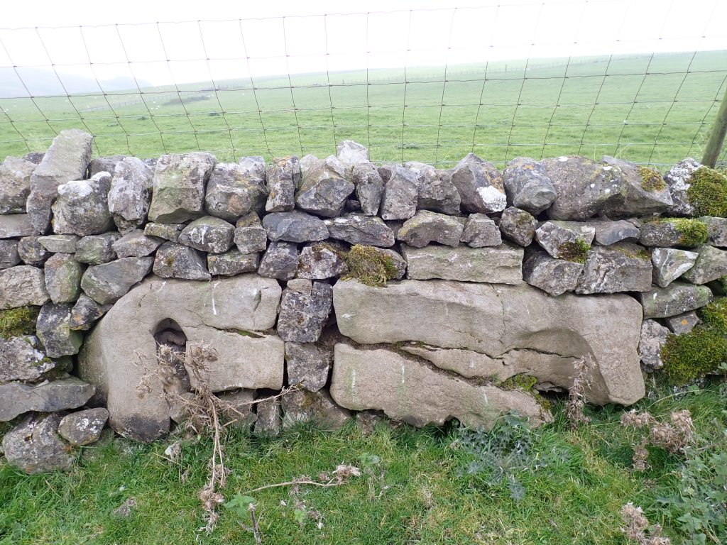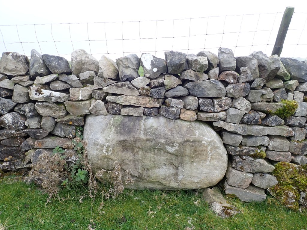 For most of its length, Mastiles Lane is either followed by a single drystone wall or is bounded by two drystone walls. I was intrigued by the large stones that occasionally made up the base of these walls. The way in which smaller stones had been carefully placed around these boulders to ensure a continuous wall looked like works of art. I couldn’t remember having seen drystone wall built this way before and so looked this technique up when I got home.