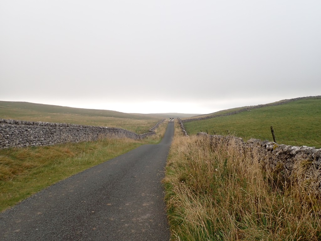 The occasionally rutted and muddy track we were on took a straight line down into a small valley. It then climbed steeply up the ridge on the other side by a rough road to reach Malham Moor. While the limestone outcrops around the Moor made the landscape feel a bit wilder, the well-maintained road that I joined at the crest of the ridge somehow made me feel like I’d left the remoteness behind.