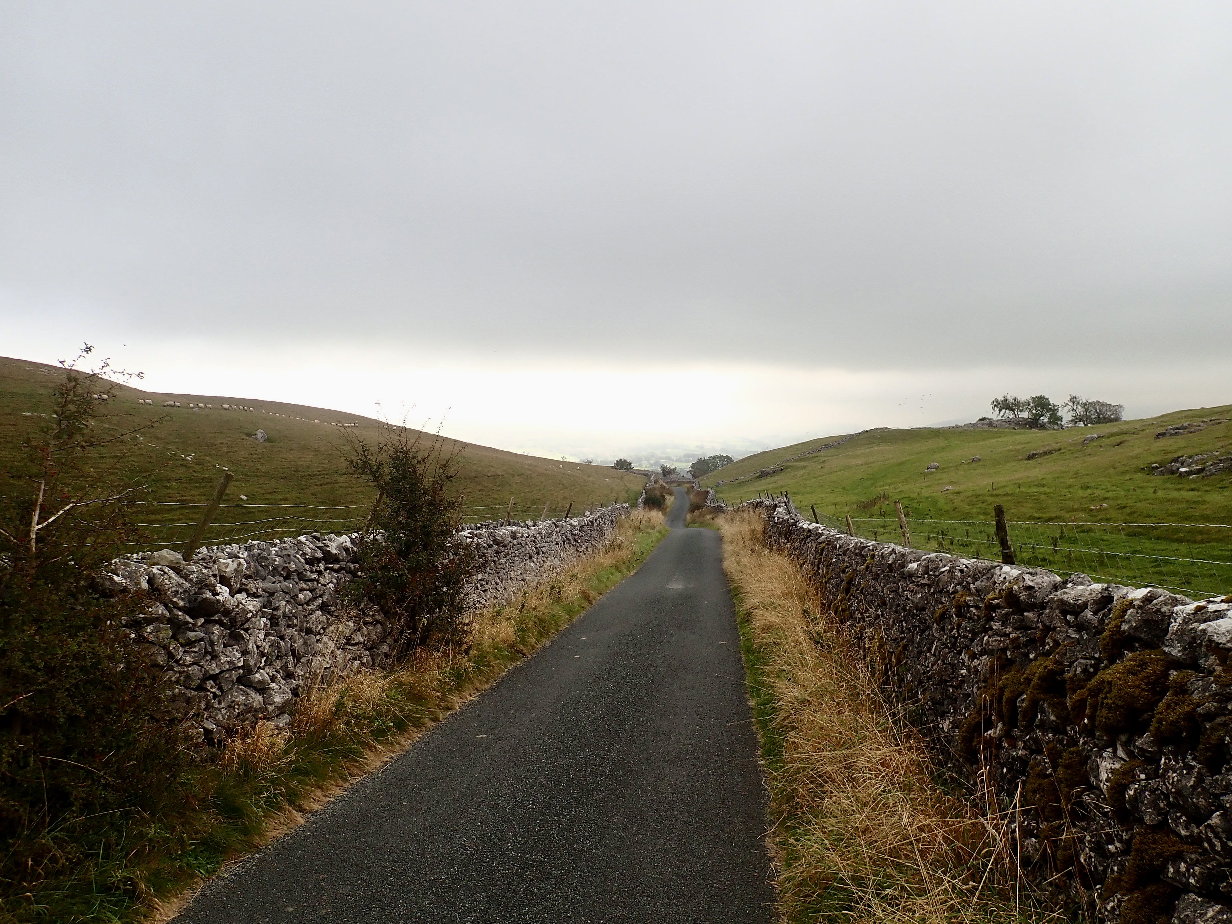 The occasionally rutted and muddy track we were on took a straight line down into a small valley. It then climbed steeply up the ridge on the other side by a rough road to reach Malham Moor. While the limestone outcrops around the Moor made the landscape feel a bit wilder, the well-maintained road that I joined at the crest of the ridge somehow made me feel like I’d left the remoteness behind.