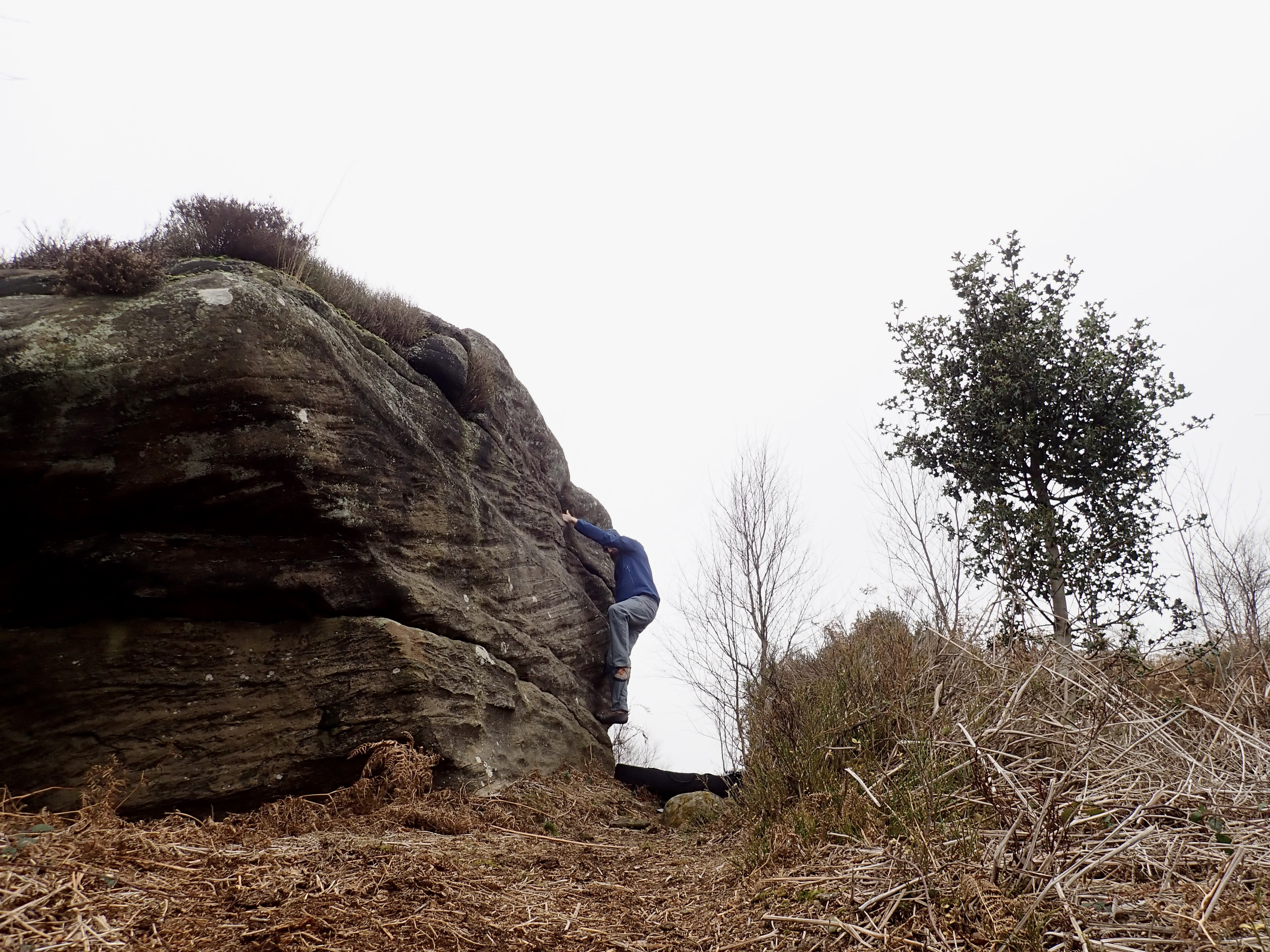 Brimham Rocks is best known for its jumble of amazing, bizarrely-shaped pinnacles, cliffs and boulders. This gritstone wonderland was always what I pictured when I thought of Brimham Rocks, and always where I climbed when I went there. I vaguely knew that there is climbing elsewhere on Brimham Moor, but I kept returning to this honeypot because I felt that nothing else on the Moor could match it. However, I recently felt the need to try somewhere new, and so looked in a bit more detail at some of Brimham’s bouldering outliers. That’s when I decided that I might have been missing something good and should visit Brimham Rocks’ Low Roof sector. However, it was only in the run-up to Christmas that I had the time, and the weather I needed, for a short trip there.