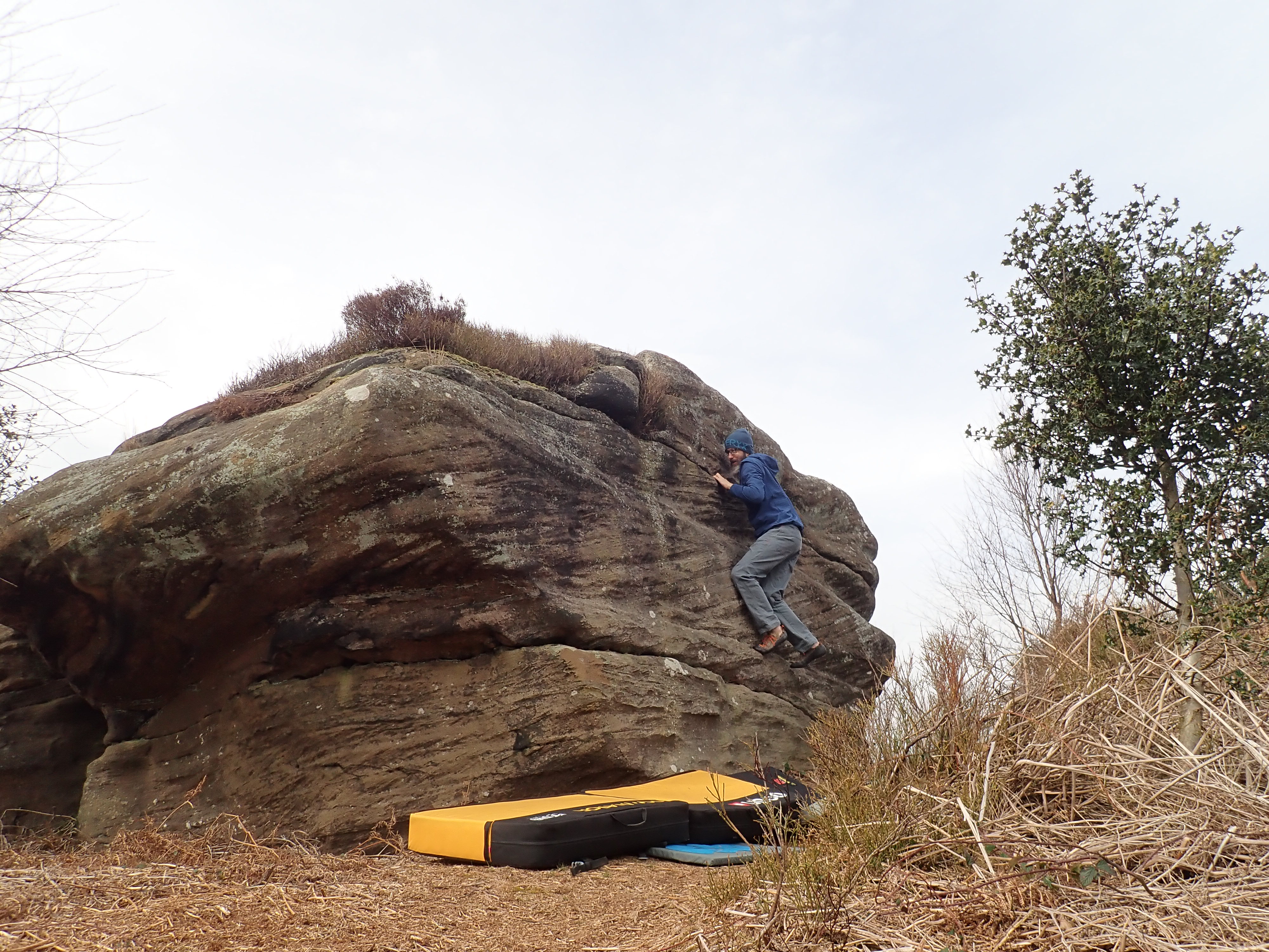 In the run-up to Christmas last year, I went bouldering at the Low Roof sector of Brimham Rocks for the first time. It was a good trip, but I unfortunately ran out of time before I could try a couple of intriguing traverses. I don’t often climb traverses, but I decided that I should try to come back to Low Roof to climb these two because they looked so engaging and fun. I realised at the beginning of March that I needed to do this within the next few weeks, otherwise the bracken would soon have regrown and enclosed the boulders. So last week I made a short and intense trip to Low Roof to go traversing.