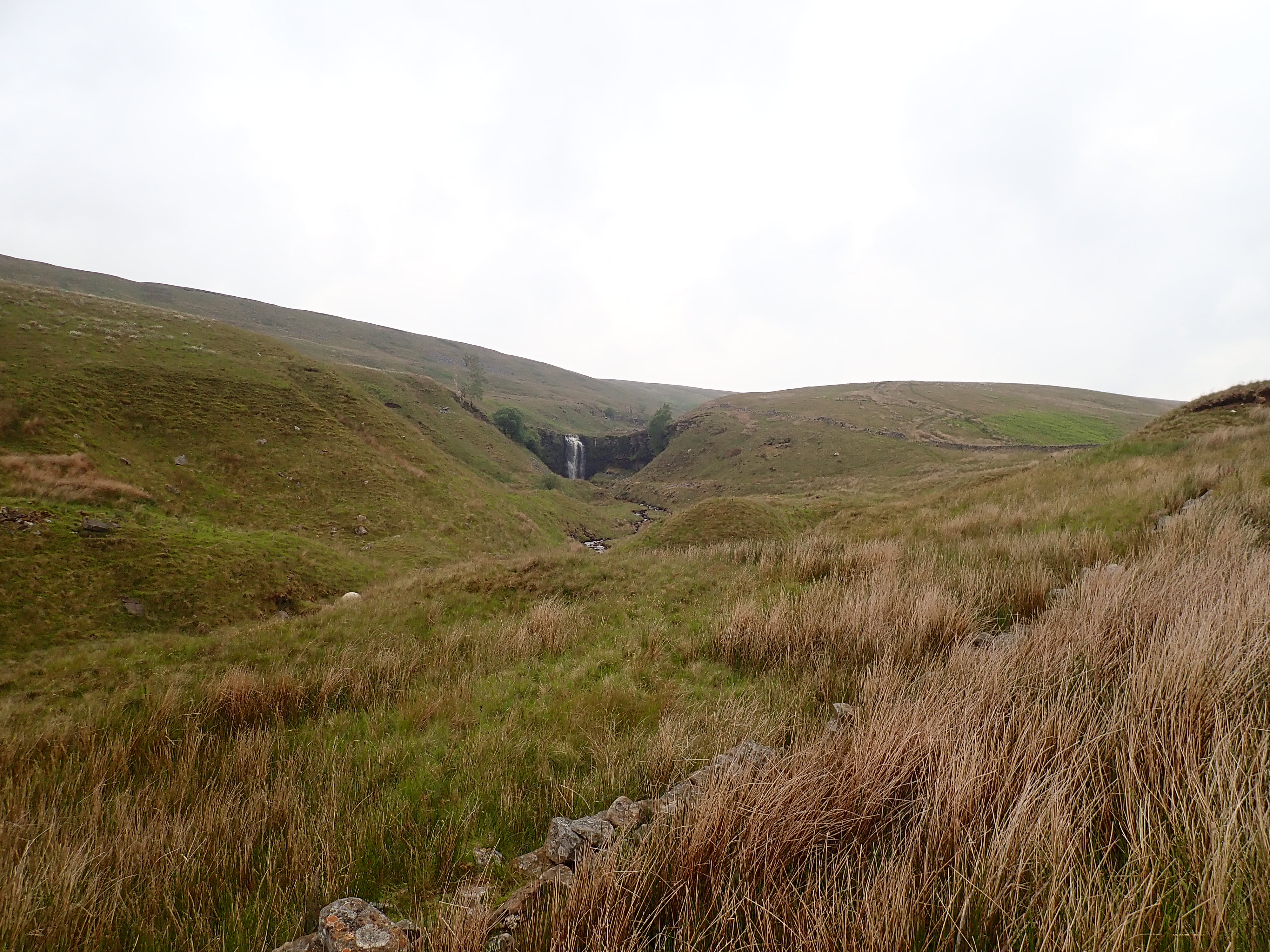 The path continues from here to climb Slack Hill by the Dales High Way before taking a sharp left to head to the North ridge of Whernside. Although the haze was obscuring the views, on this stretch of my walk I enjoyed seeing the waterfall on Force Gill and the white tufts of the cotton grass (AKA Eriophorum) on the moor.