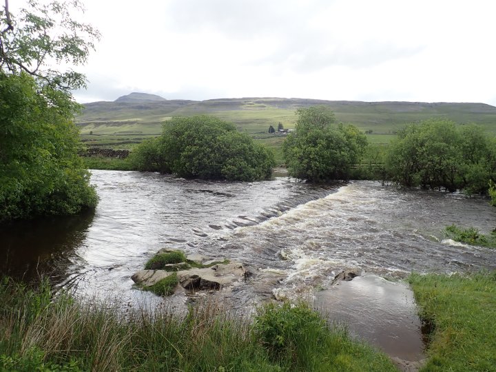 The drumming of heavy rain against my tent woke me in the early hours of the morning and planted a worry in my head before I sank back into sleep. By the time I woke up, the sun had begun to push away the clouds and my concerns. Although my legs were stiff and achy from the previous day’s walk over Whernside, I felt optimistic about my walk up Ingleborough and then to Ribblehead Station via Simon Fell and Park Fell. It also looked like the weather would give me the clear views I had missed on the previous day. However, as I took down my tent and packed up, the worry that had been implanted in my brain during the night kept pushing back at this optimism. Unfortunately, I discovered that my concerns were well-founded after I’d left the campsite and walked down the track to the bottom of the dale. Here, I found that the heavy overnight rain had raised the level of the River Doe so high that the stepping stones that I had planned to use to cross were totally submerged by fast flowing, brown water. I stood by the riverbank for some time and considered my options.