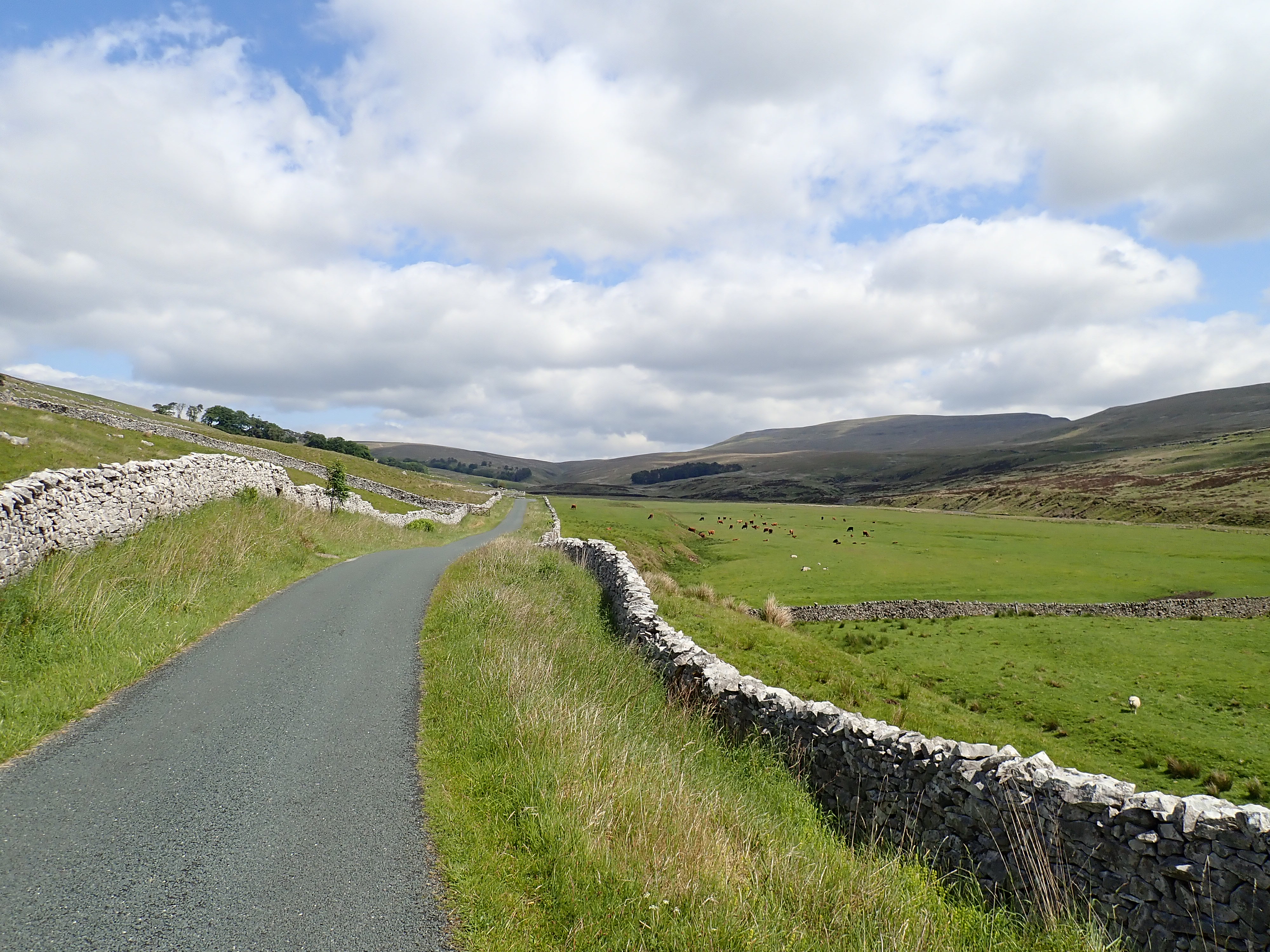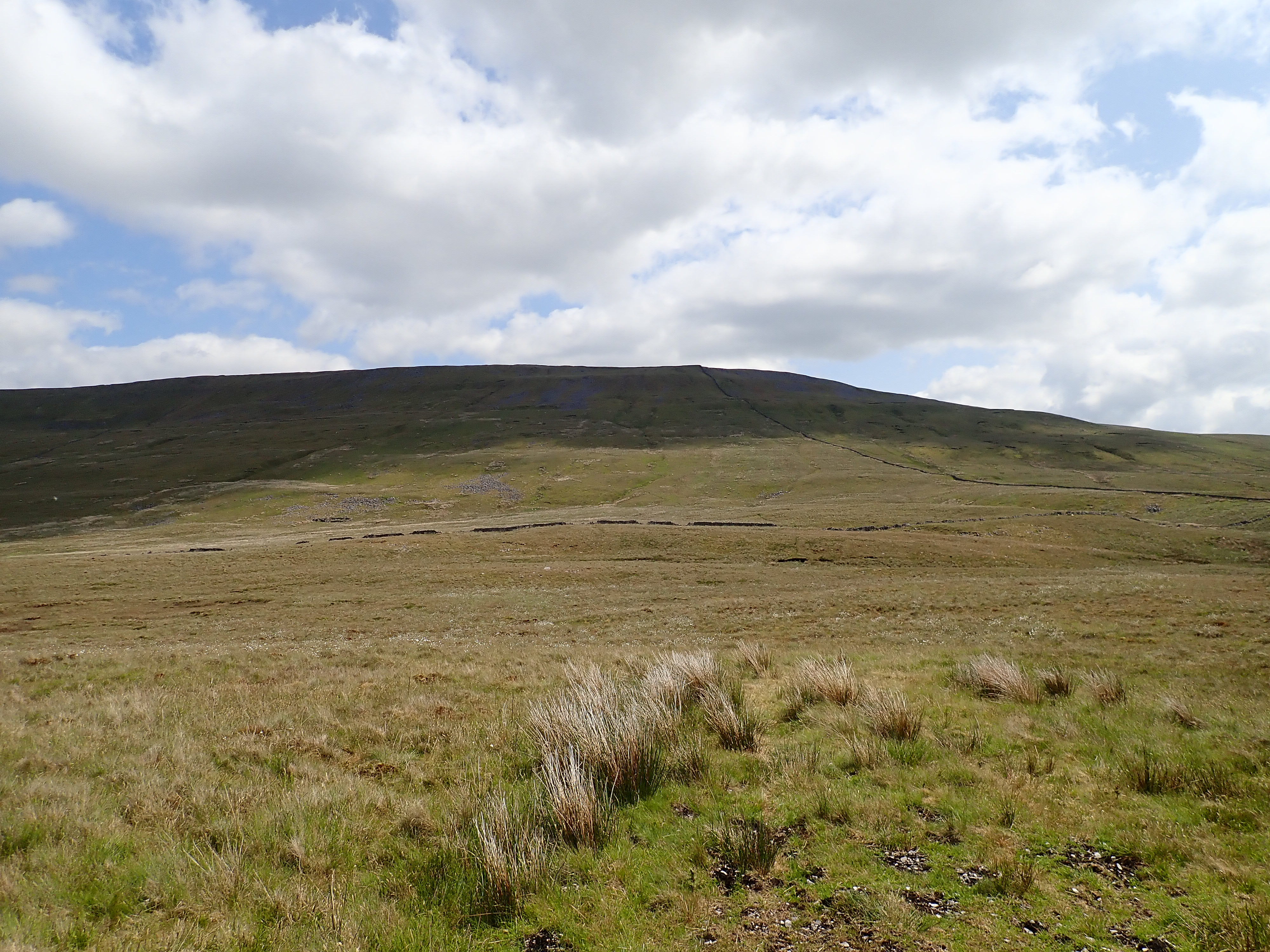 The gradient slowly eased as I reached the saddle and came level with the summit of Whernside. I looked over to the slopes of Whernside to see if traversing around the mountain at this height would be a viable alternative to dropping down into Deepdale and then climbing back out again. This route would be several kilometres across tussock-covered boggy moorland, with several walls to climb over. I decided it wasn’t a viable option and walked down the road into Deepdale.