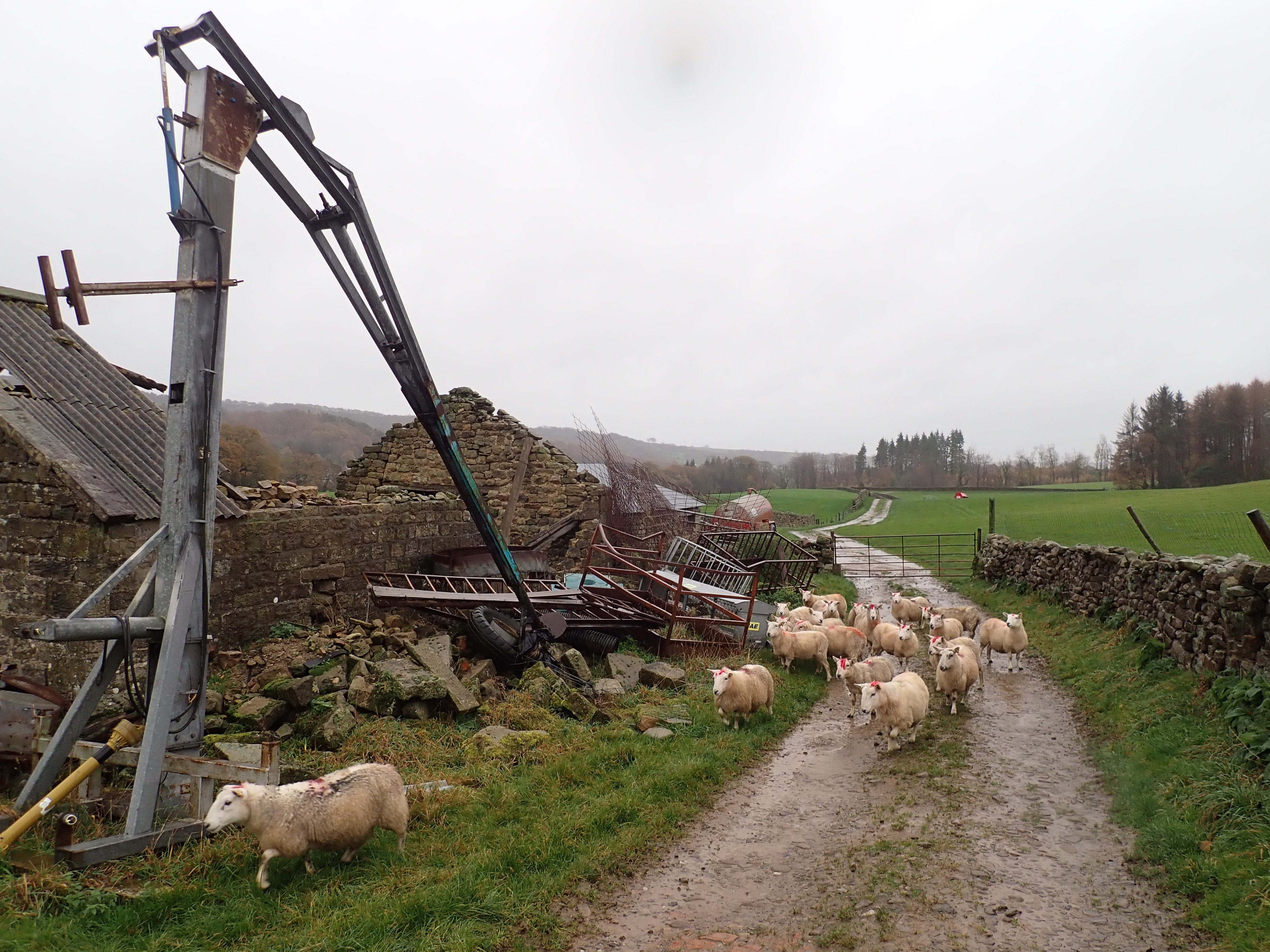 I really don’t know what that thing is. It does look a bit like it’s responsible for the destruction of the building. Part of the reason I took the photo was that I was interested by the contrast between the intrigued, calm sheep and the chaos of the ruined building and assorted pieces of farm equipment.