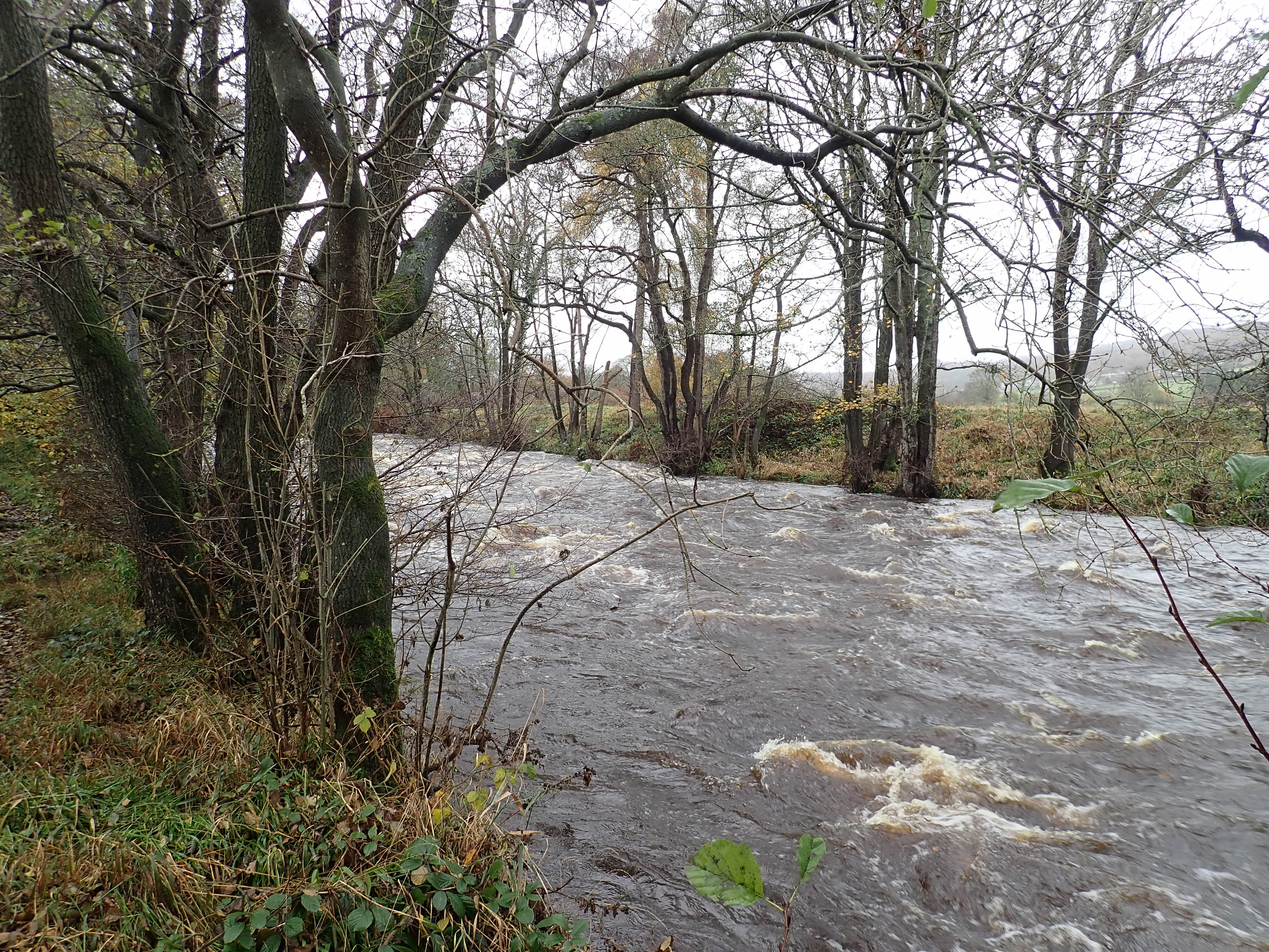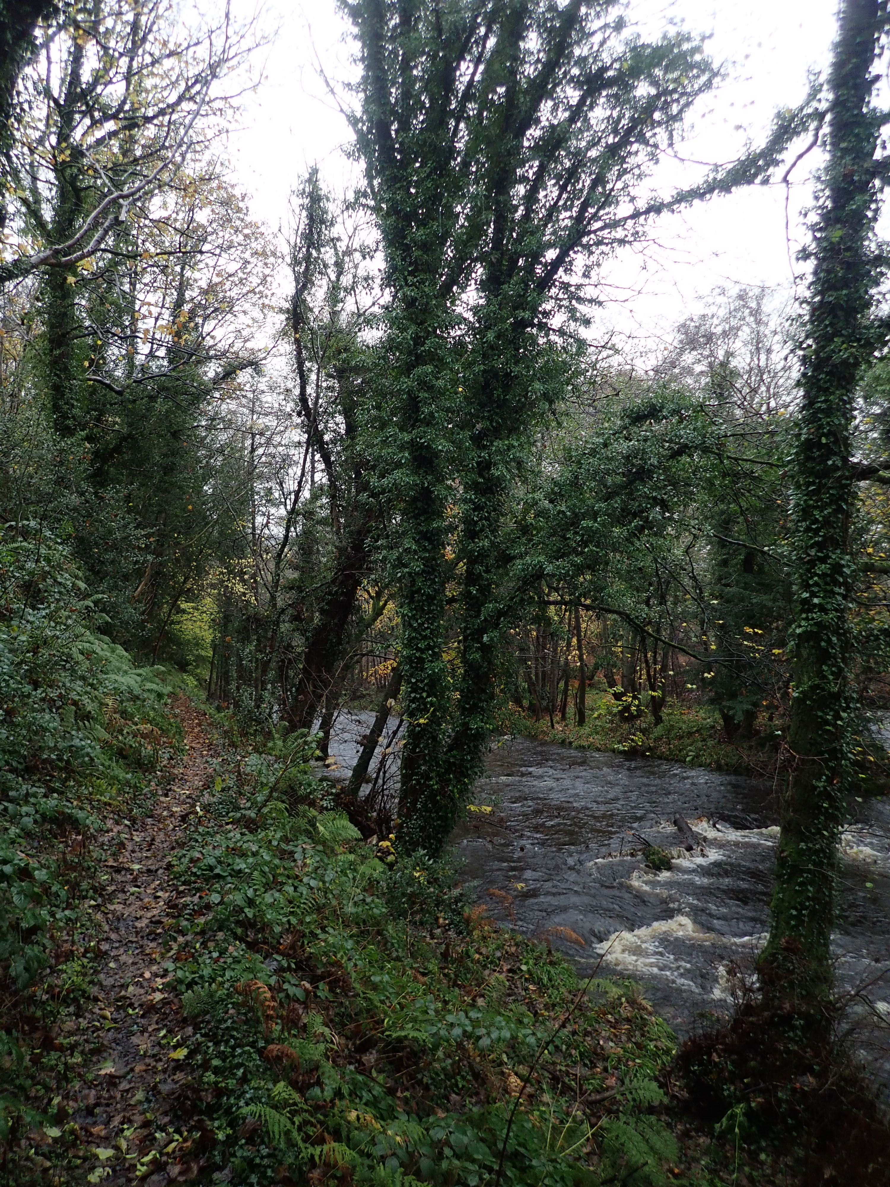 When I had walked this path when doing the Nidderdale Way, it had been summer and the river gently flowed over the stones. Now it swept past the bases of the trees and flooded the path in a couple of places. I really enjoyed walking along this path and hearing the roar of the patches of white water.