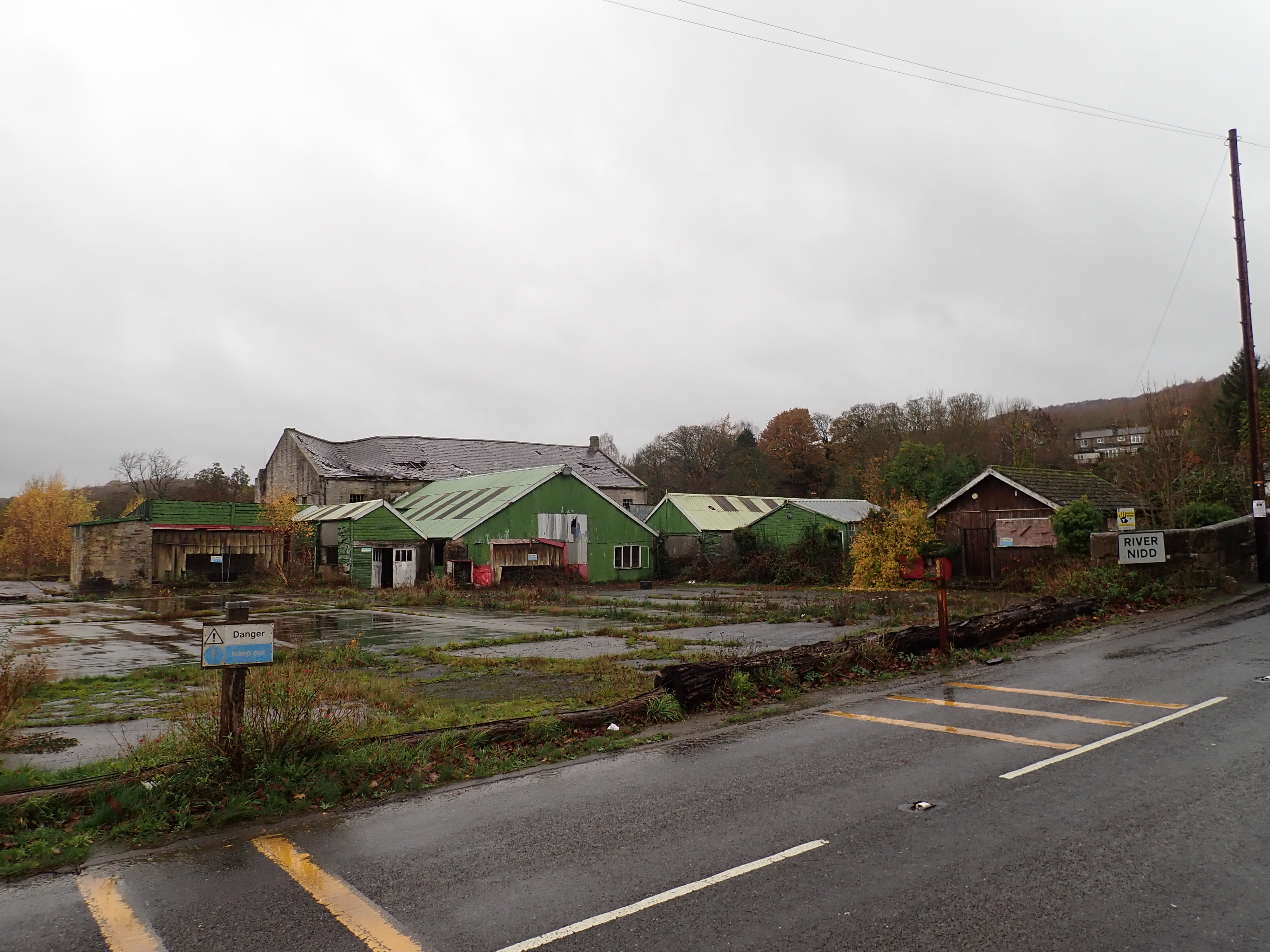 The path went past the Dacre Banks tennis club and then onto Summer Bridge by a flight of stone steps and a narrow gap in the bridge’s wall. The closed Nidd Valley Sawmills on the other side of the road looked even more derelict than when I was last here. Its roof seemed to be slowly collapsing, and the whole place looked sad in the rain.