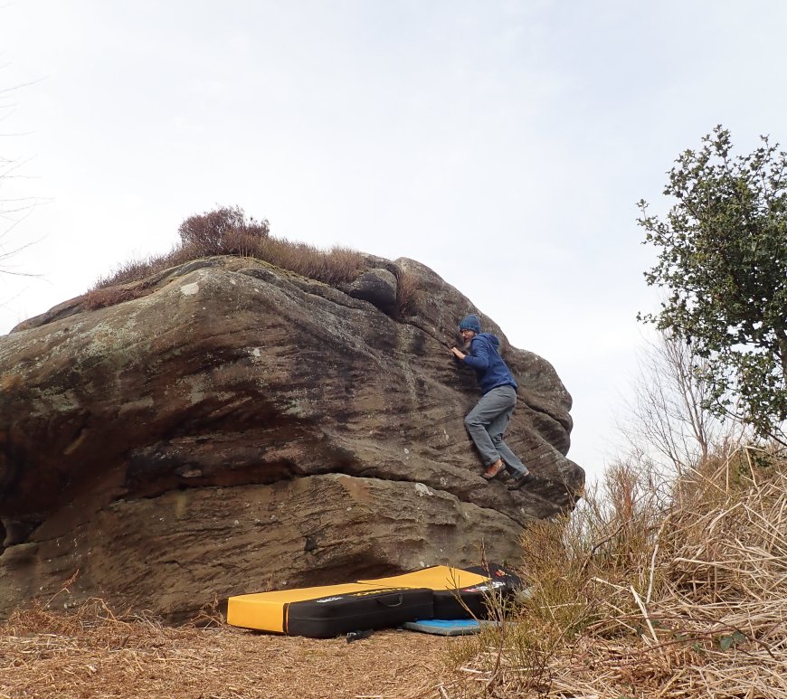 In the run-up to Christmas last year, I went bouldering at the Low Roof sector of Brimham Rocks for the first time. It was a good trip, but I unfortunately ran out of time before I could try a couple of intriguing traverses. I don’t often climb traverses, but I decided that I should try to come back to Low Roof to climb these two because they looked so engaging and fun. I realised at the beginning of March that I needed to do this within the next few weeks, otherwise the bracken would soon have regrown and enclosed the boulders. So last week I made a short and intense trip to Low Roof to go traversing.