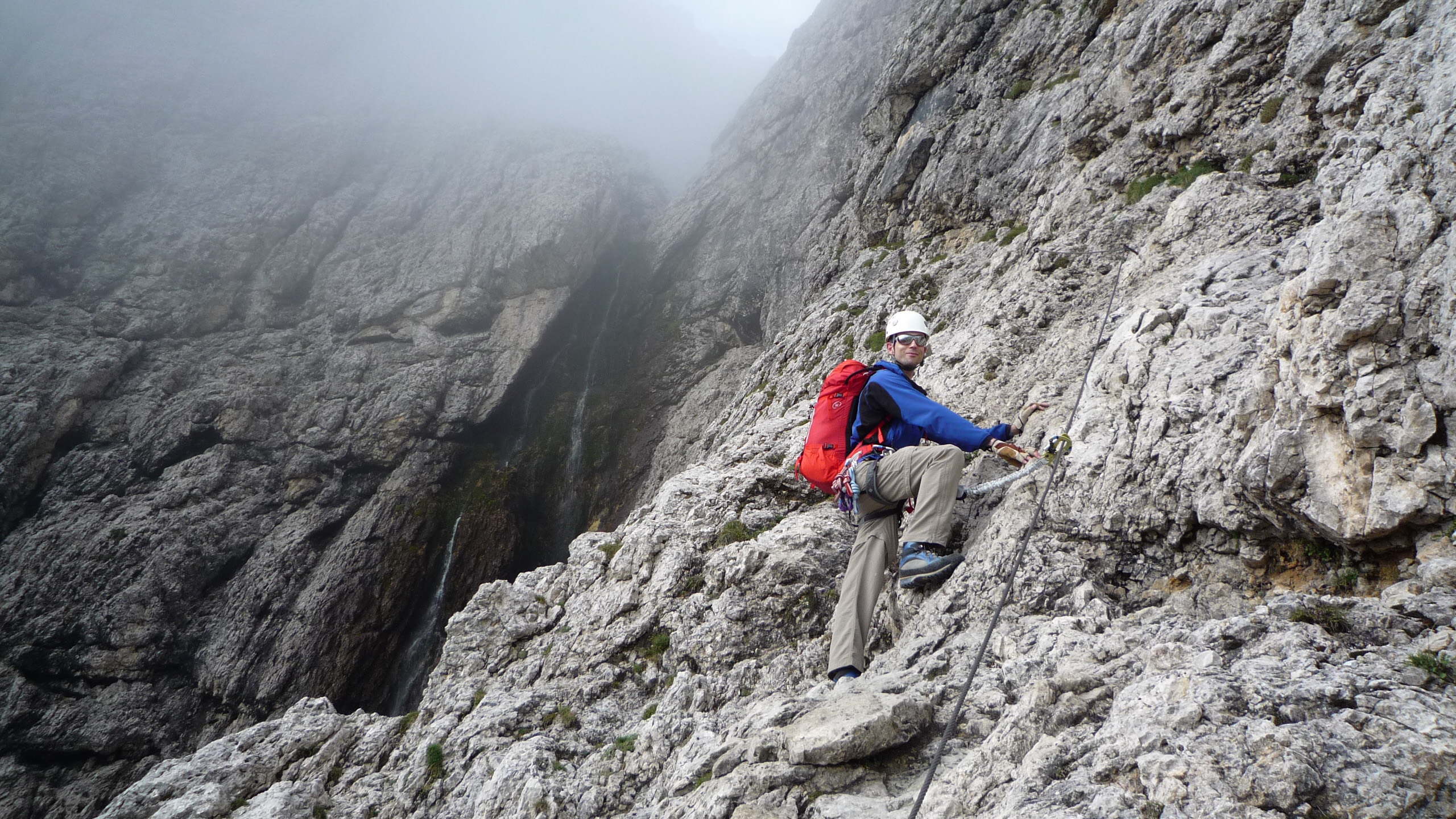 Climbing the Via Ferrata Brigata Tridentina.